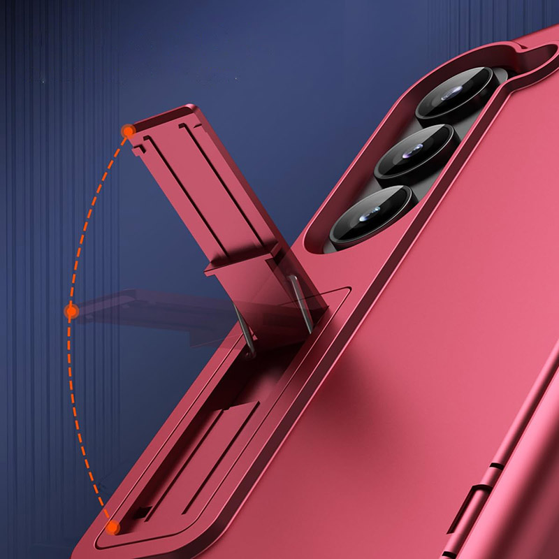 Противоударен калъф за Samsung Galaxy Z Fold 4 с пълна защита на пантата, твърд PC гръб и подсилени ъгли против удари. Вграден kickstand за хоризонтално гледане, повдигнати ръбове за камерата и екрана и тънък профил, който не пречи на сгъването.