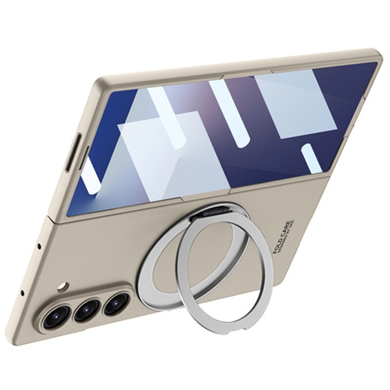 Калъф с магнитен пръстен за Samsung Galaxy Z Fold 7 и практична стойка на гърба, която се върти. Мощен магнитен пръстен на гърба на калъфа прилепва плътно до зарядни и стойки за автомобил. Калъфът е изработен от висококачествени материали с луксозен дизайн и придава премиум излъчване на телефона.