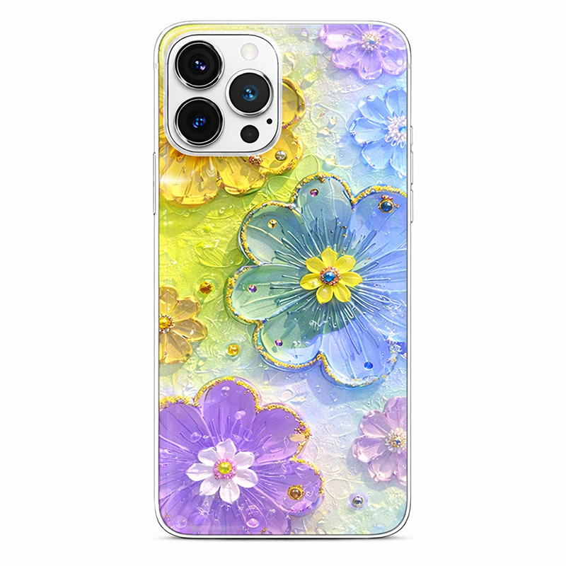 Калъф с цветя и камъни за iPhone 16 Pro шарен Калъф с цветя и камъни за iPhone 16 Pro шарен