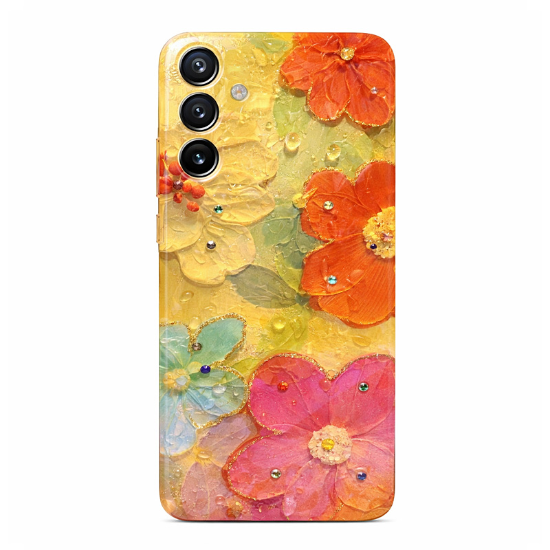 Калъф с цветя и камъни за Samsung Galaxy A54 оранжевКалъф с цветя и камъни за Samsung Galaxy A54 оранжев
