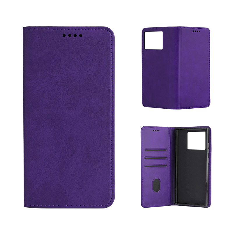 Кожен калъф с магнитен капак за Honor 400 лилав