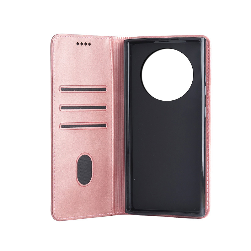 Кожен калъф с магнитен капак за Honor Magic 7 Lite розов