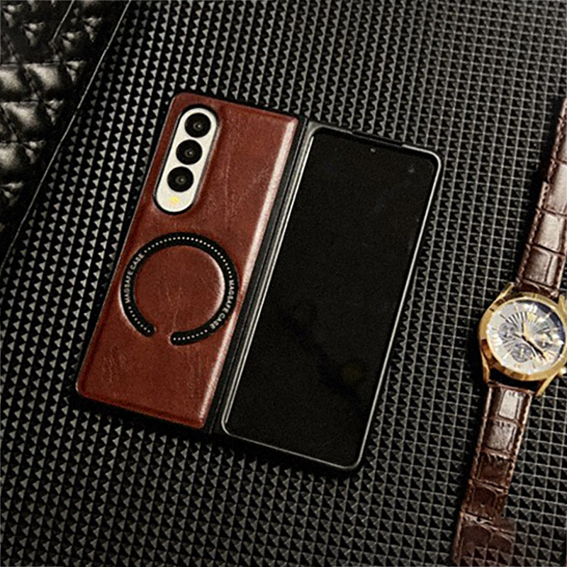 Кожен калъф с Magsafe за Samsung Galaxy Z Fold 4 кафявКожен калъф с Magsafe за Samsung Galaxy Z Fold 4 кафяв