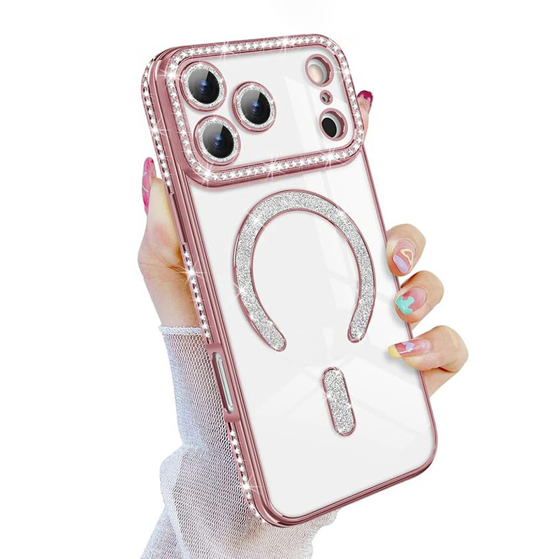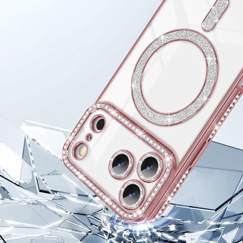 Луксозен блестящ калъф с кристали за iPhone 17 Pro Max с magsafe. Невероятната детайлност и изработка на кристалите класират калъфа в премиум сегмента. Най-продаваният ни женски оригинален калъф идва сега с още по-високо качество на изработка и пълна защита на камерата.