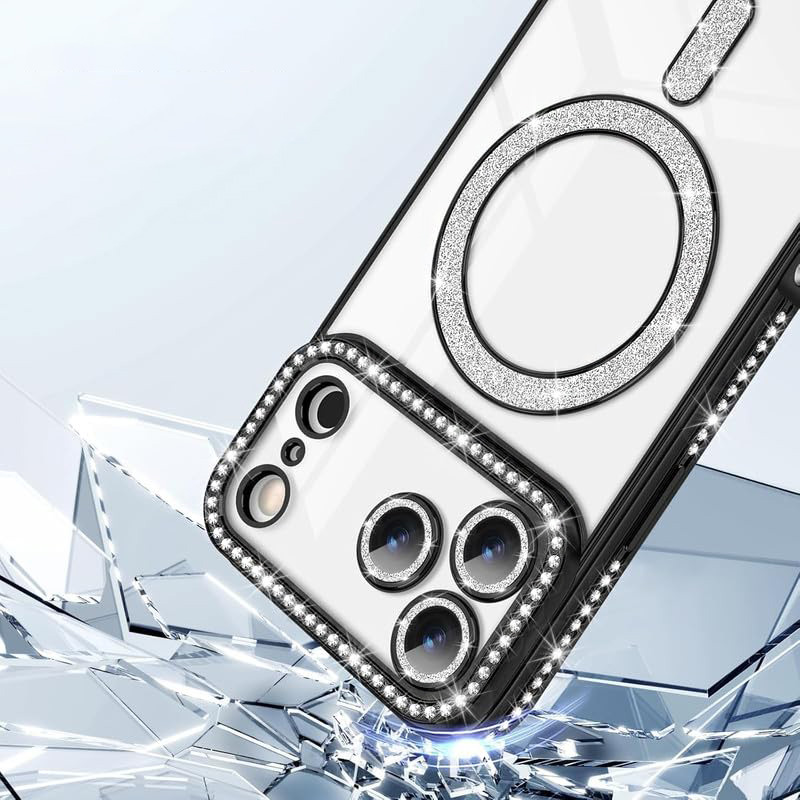 Луксозен блестящ калъф с кристали за iPhone 17 Pro Max с magsafe. Невероятната детайлност и изработка на кристалите класират калъфа в премиум сегмента. Най-продаваният ни женски оригинален калъф идва сега с още по-високо качество на изработка и пълна защита на камерата.
