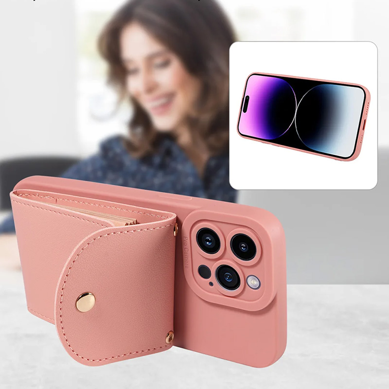 Луксозен калъф с портфейл за iPhone 13 Pro розовЛуксозен калъф с портфейл за iPhone 13 Pro розов