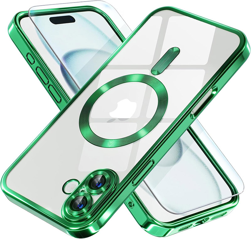Луксозен прозрачен калъф за iPhone 17 зеленЛуксозен прозрачен калъф за iPhone 17 зелен