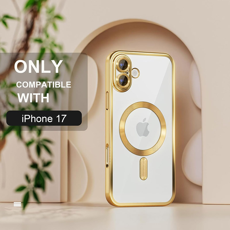 Луксозен прозрачен калъф за iPhone 17 златен Луксозен прозрачен калъф за iPhone 17 златен