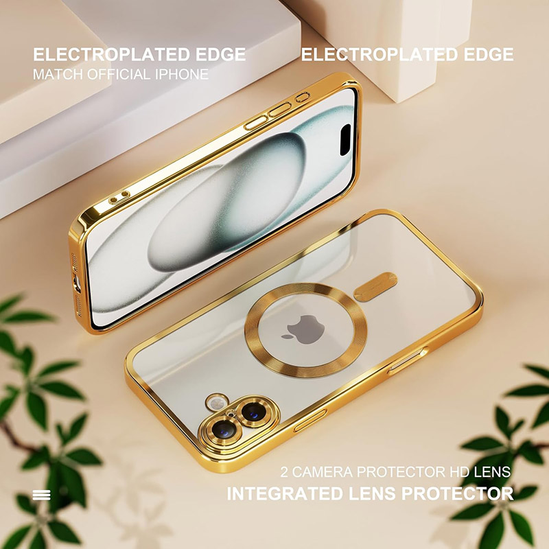 Луксозен прозрачен калъф за iPhone 17 златен