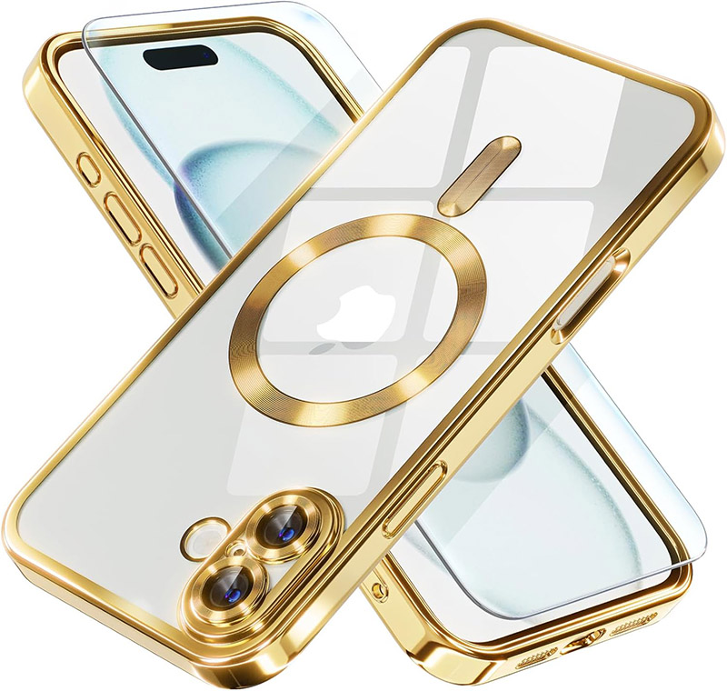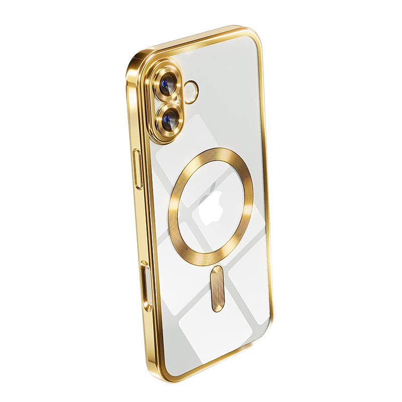 Луксозен прозрачен калъф за iPhone 17 златенЛуксозен прозрачен калъф за iPhone 17 златен