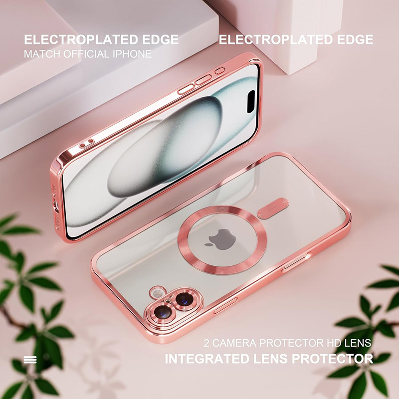Луксозен, прозрачен калъф за iPhone 17 с MagSafe пръстен за бързо и стабилно безжично зареждане. Прецизна пълна защита на камерите и елегантна метализирана рамка за премиум вид и по-добра устойчивост. Калъфа има подсилени ъгли против удари.