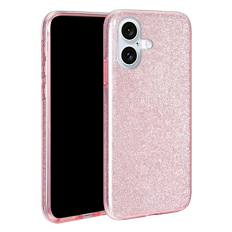 Калъфът е с искряща повърхност (кристален/брокатен ефект), която улавя светлината и прави телефона по-отличим. Метализираната рамка около камерите допълва визията и подчертава контурите на телефона.