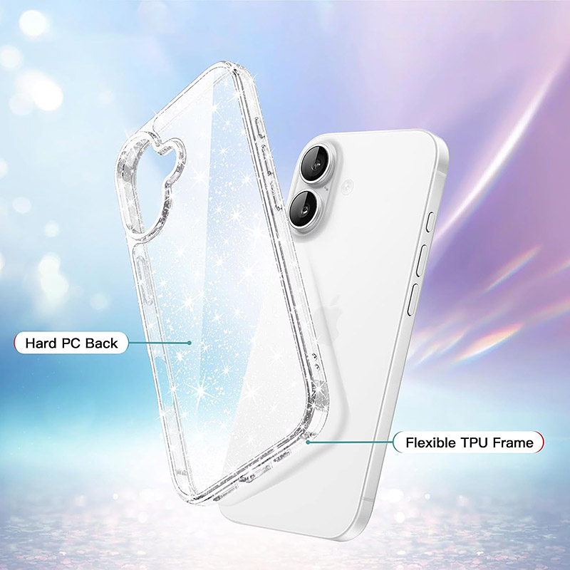 Прозрачен бляскав калъф за iPhone 17Прозрачен бляскав калъф за iPhone 17