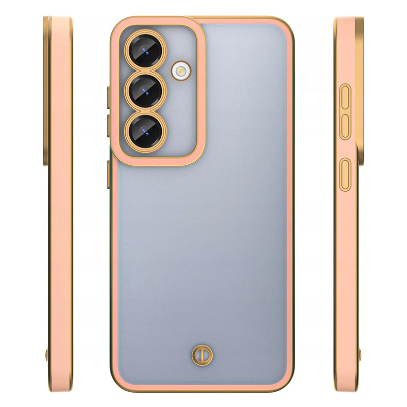 Прозрачен калъф за Samsung Galaxy A36 със златна рамка, създаден да покаже оригиналния дизайн и цвят на телефона и едновременно с това да добави премиум акцент. Прозрачният гръб подчертава цвета и линиите на устройството, а златистият кант оформя елегантна визия и допълнителна защита по ръбовете.