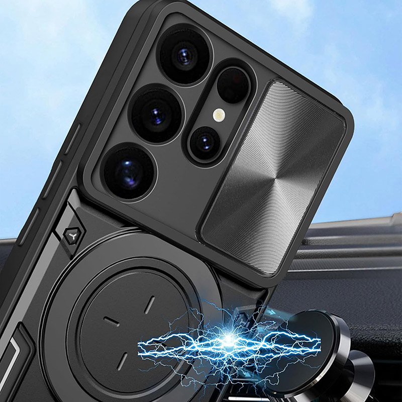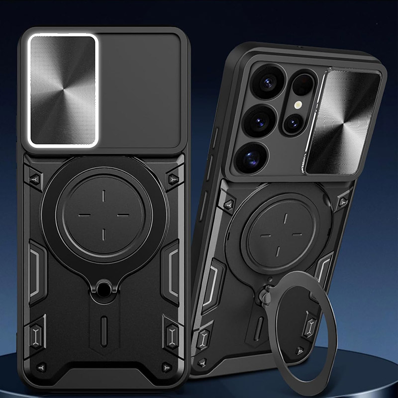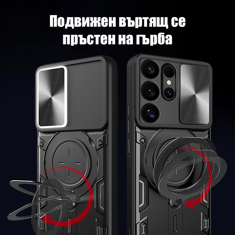 Удароустойчив калъф с пръстен за Samsung Galaxy S26 Ultra, който ще предпази сигурно телефона ви. Изработен от здрав и твърд материал с голяма дебела, калъфа абсорбира ударите и предпазва телефона и екрана от повреди. На гърба на калъфа има пръстен, който може да използвате като поставка или при разговори с телефона. Повърхността е абразивна и осигурява добро захващате с ръката, което предотвратява изпускане. За защита на камерата се грижи подвижното капаче, което покрива изцяло камерите.